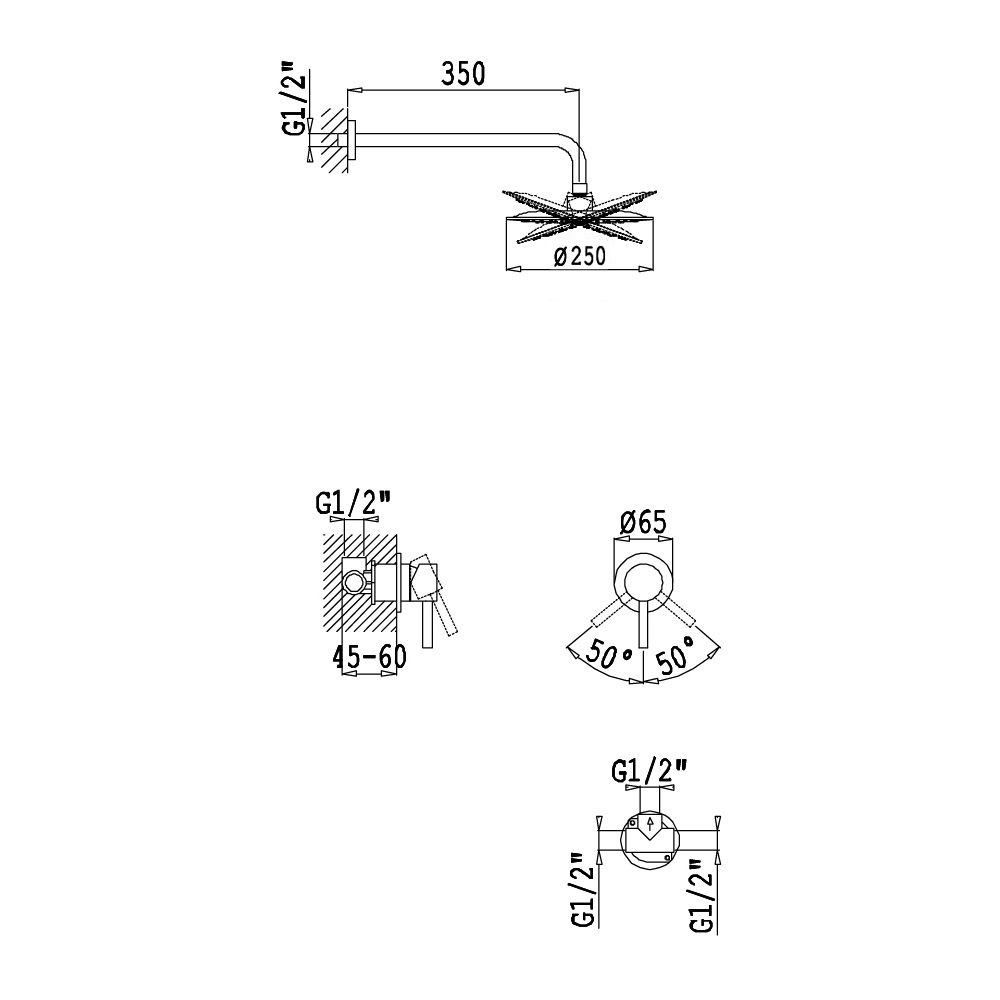 Bruma Lusitano Zestaw natryskowy 250 mm Podtynkowy z ramieniem ściennym chrom 1077603CR