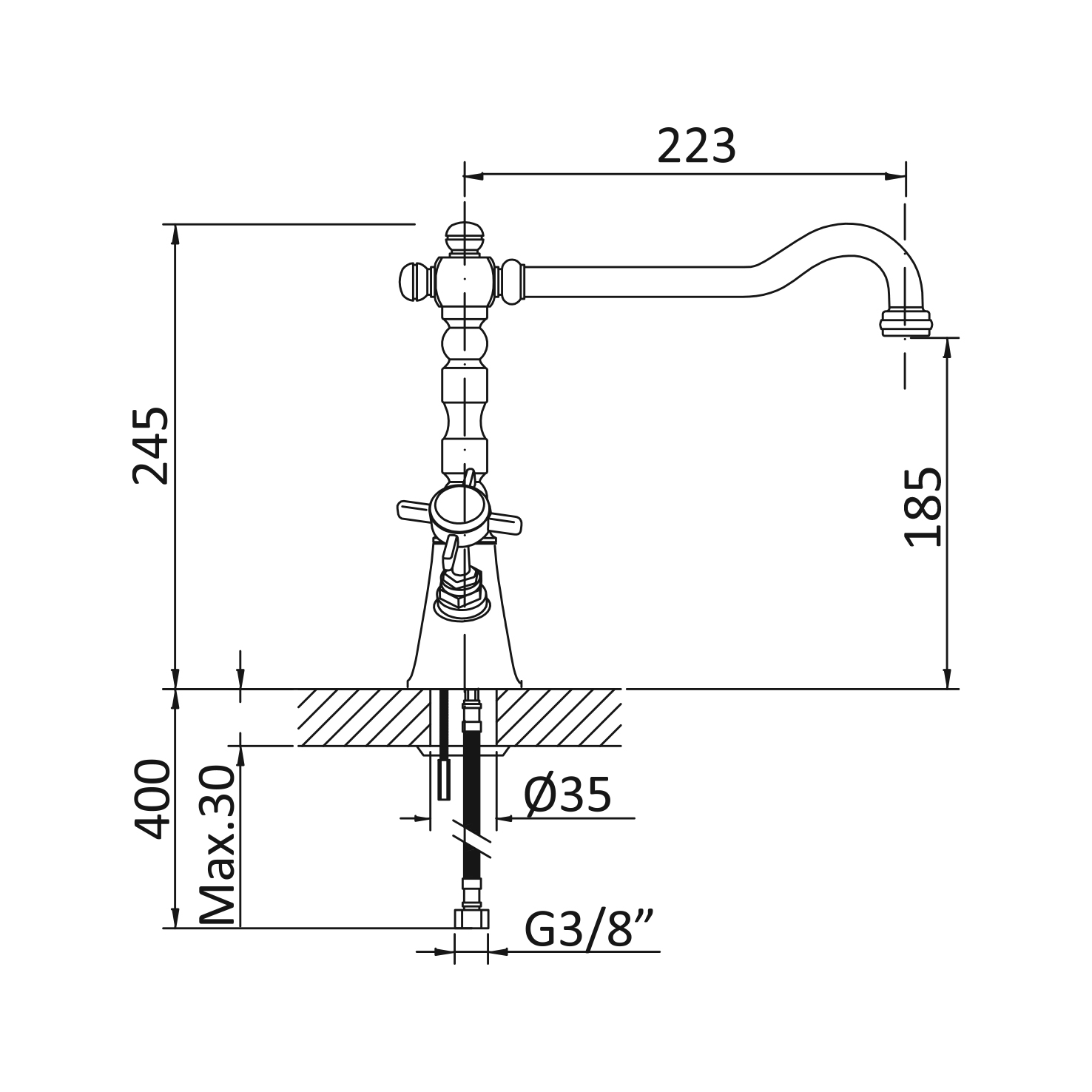 Bruma Imperial Bateria umywalkowa jednootworowa bez korka chrom 1177100CR