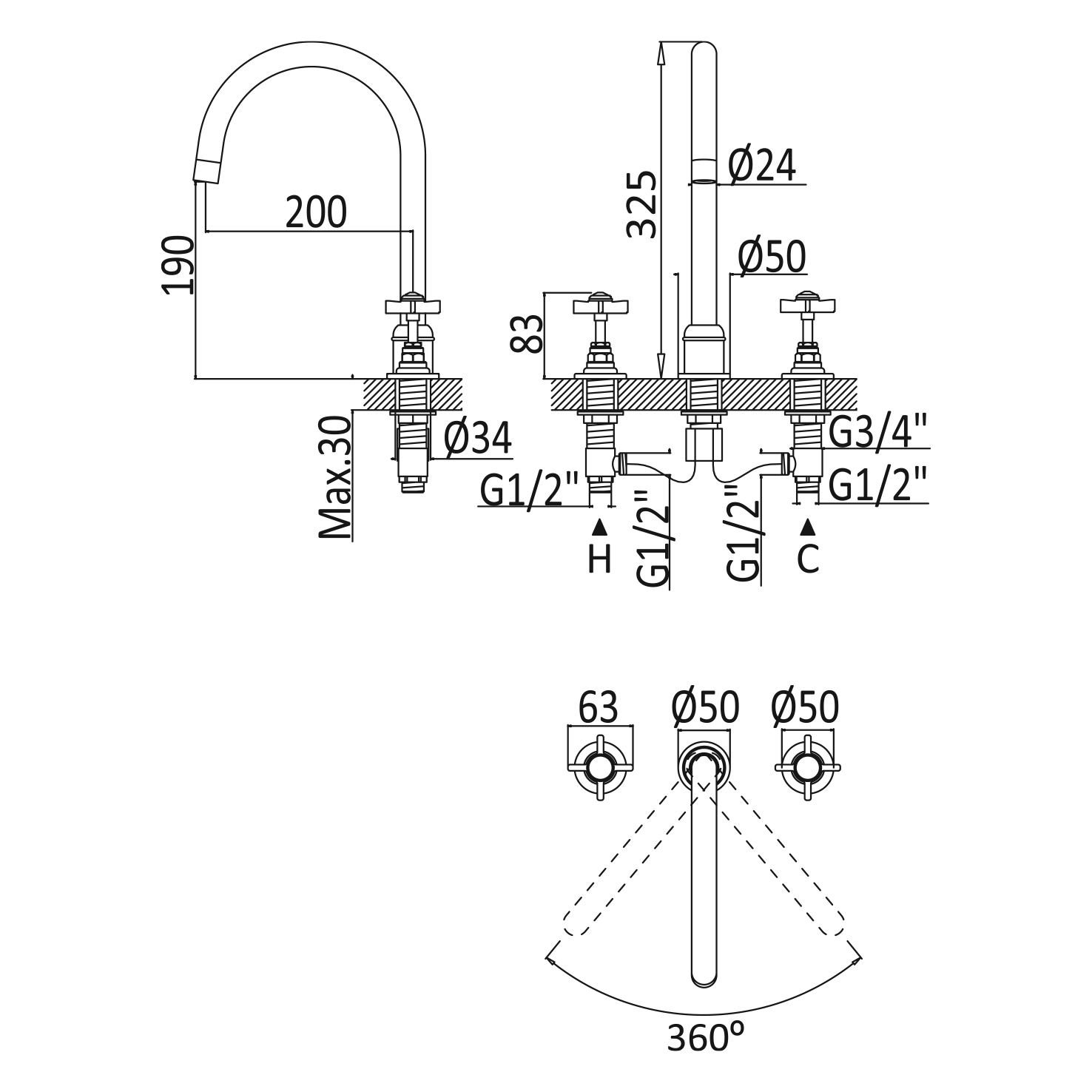Bruma Imperial Bateria umywalkowa 3-otworowa bez korka chrom 1172400CR