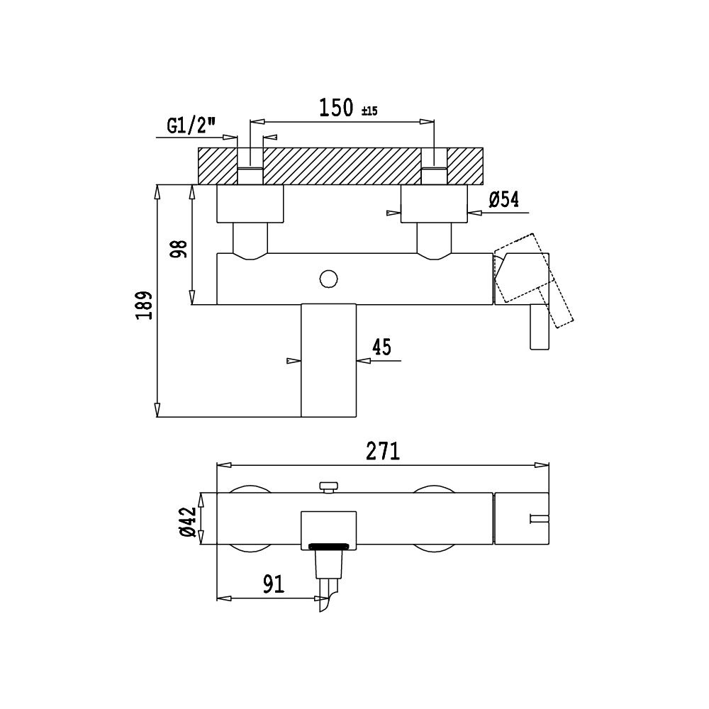 Rozstaw przyłączy: 150±15 mm