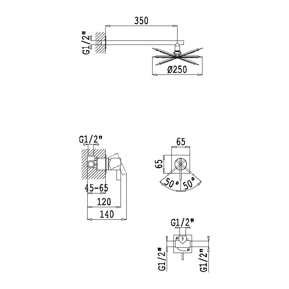 Bruma Breeze Zestaw natryskowy 250 mm podtynkowy z ramieniem ściennym chrom 1687661CR