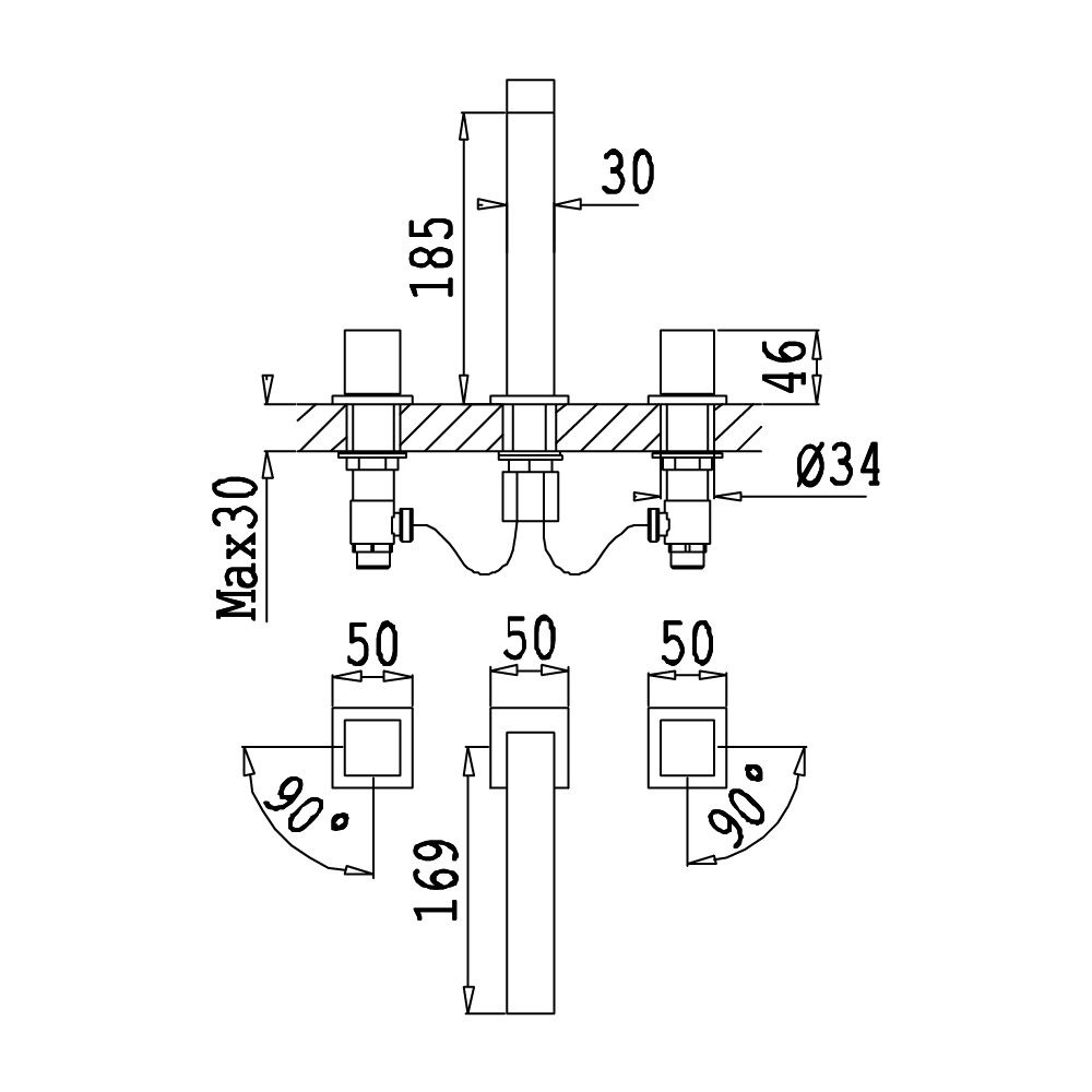 Bruma Adamastor Bateria umywalkowa 3-otworowa z korkiem Click-Clack chrom 3012542CR
