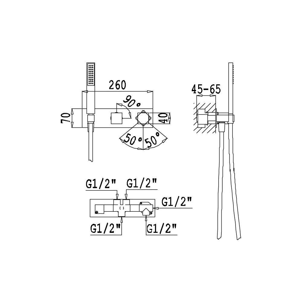 Bateria 3-drożna podtynkowa z elementem podtynkowym w zestawie.