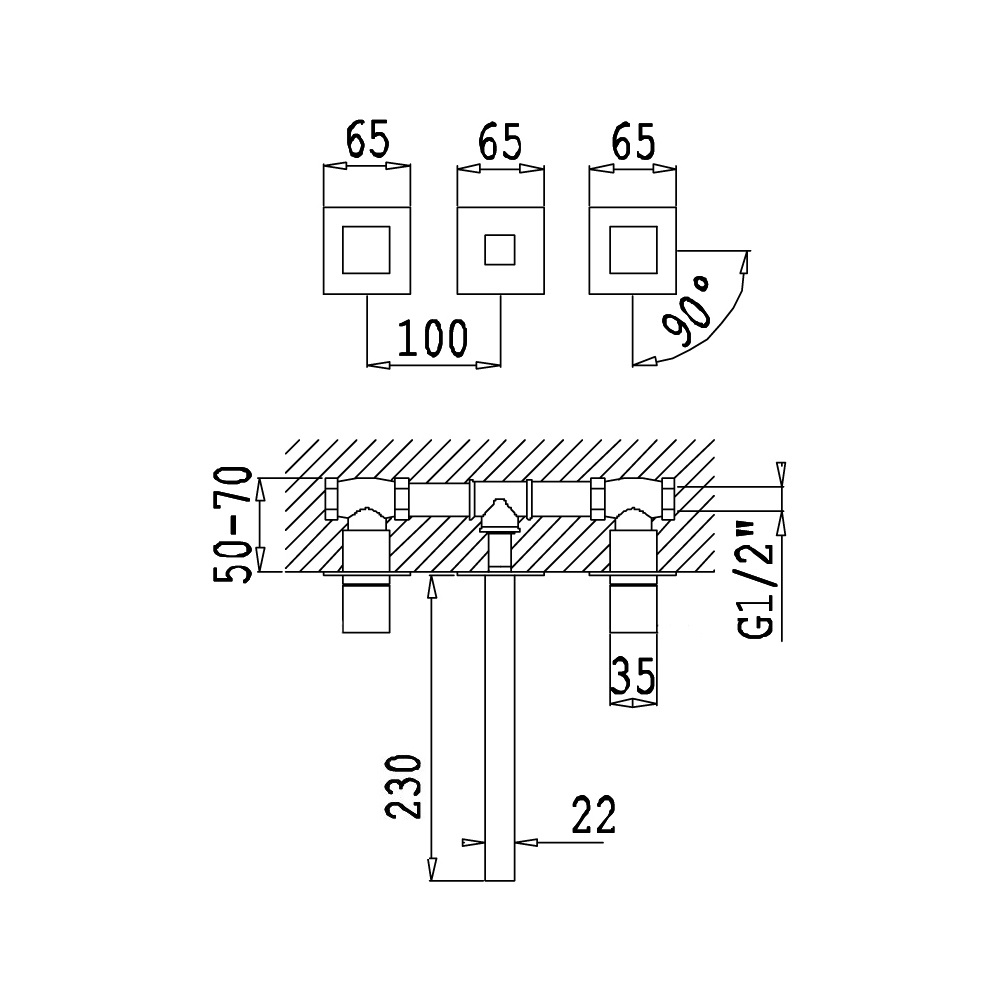 Bruma Escudo Bateria umywalkowa podtynkowa 230 mm chrom 1029502CR