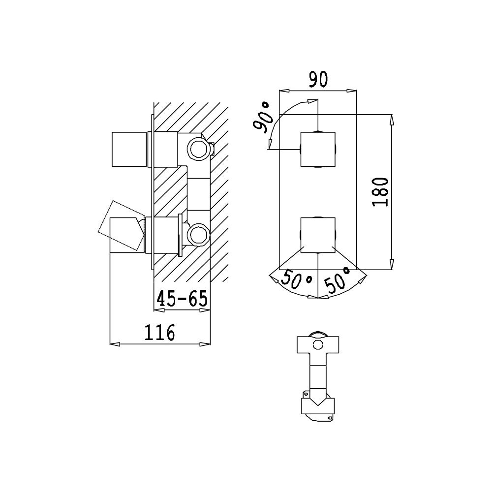 Bateria 2-drożna podtynkowa z elementem podtynkowym w zestawie.