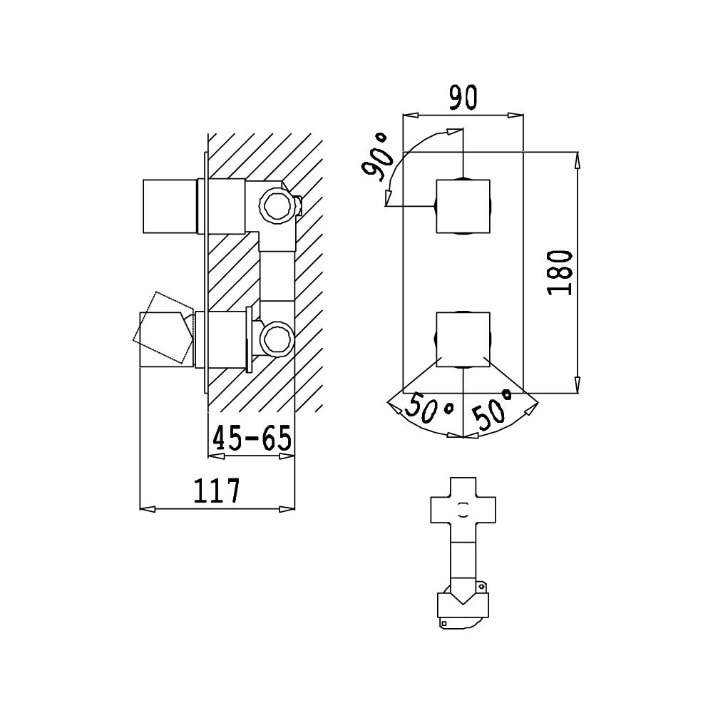 Bateria 3-drożna podtynkowa z elementem podtynkowym w zestawie.