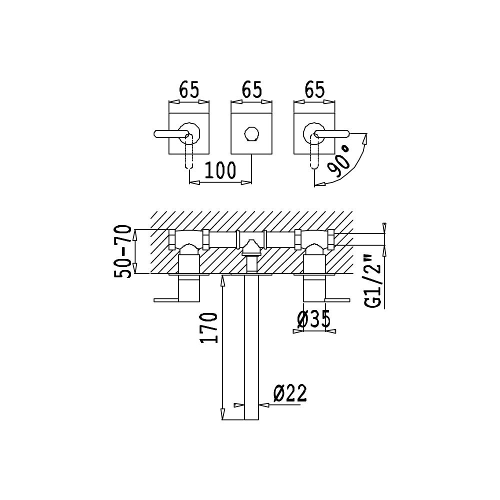 Bruma Lusa Bateria umywalkowa Podtynkowa 170 mm chrom 10192011