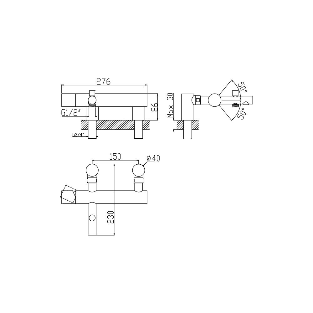 Rozstaw przyłączy: 150 mm