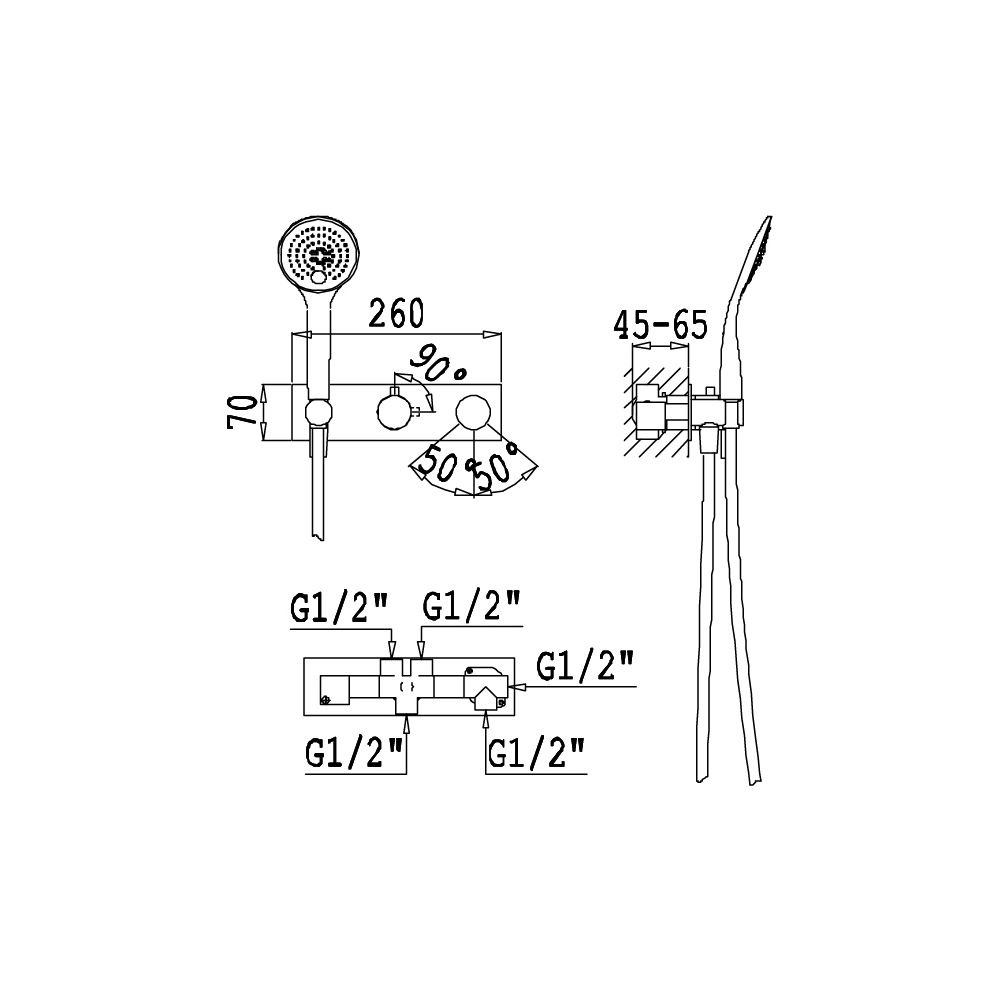 Bateria 3-drożna podtynkowa z elementem podtynkowym w zestawie.