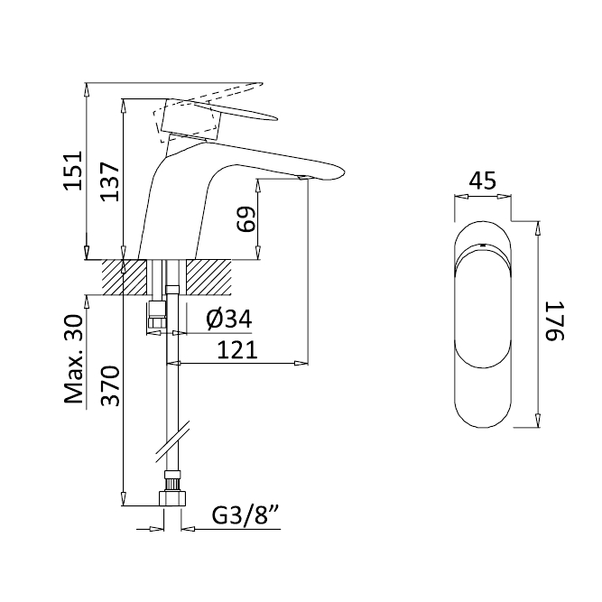 Długość wylewki: 121 mm