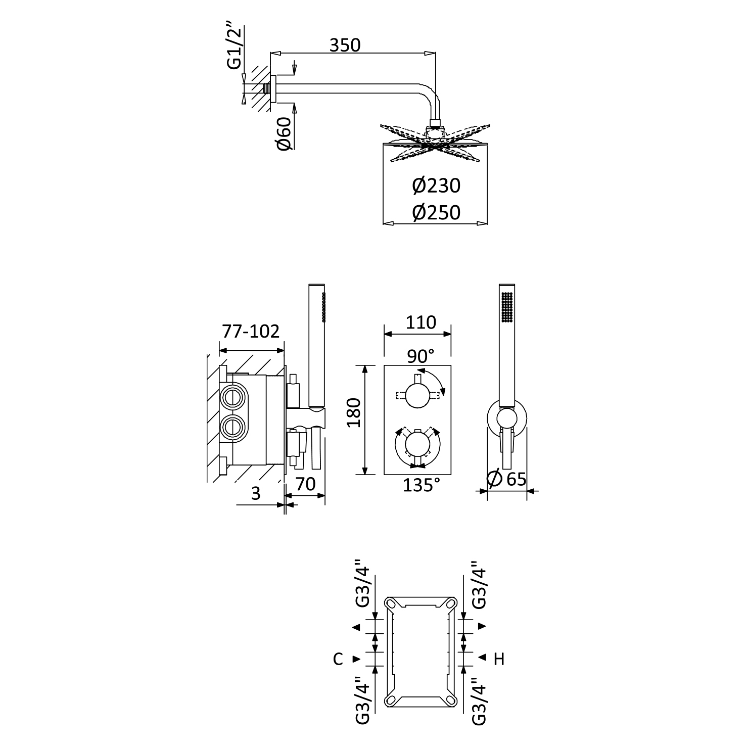 Średnica deszczownicy: Ø230 mm