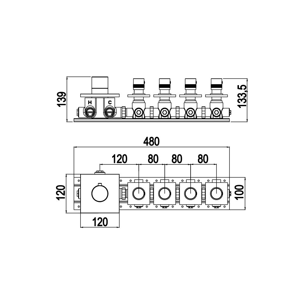 Bruma Flow Bateria natryskowa termostatyczna podtynkowa z 4 wyjsciami chrom 17915011