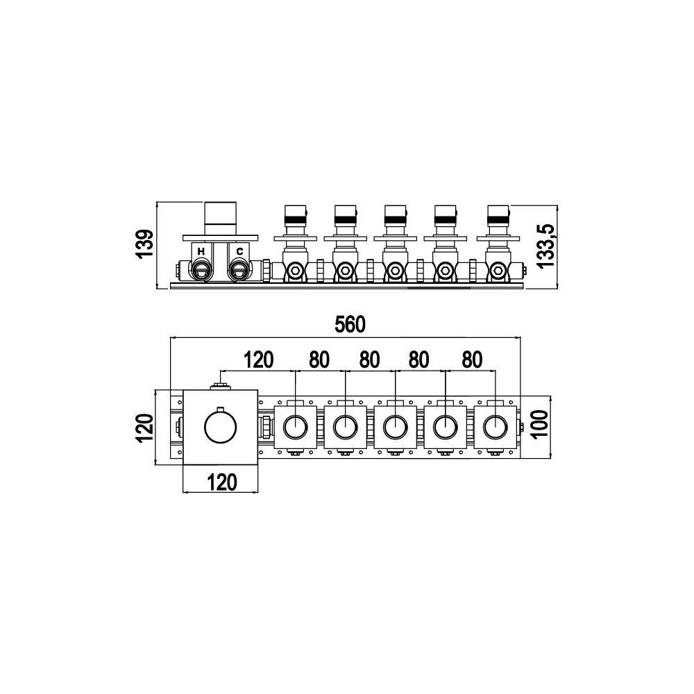 Bruma Flow Bateria natryskowa termostatyczna podtynkowa z 5 wyjsciami chrom 17918011