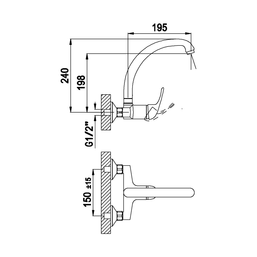 Bruma Mustang Bateria zlewozmywakowa naścienna chrom 1160541CR