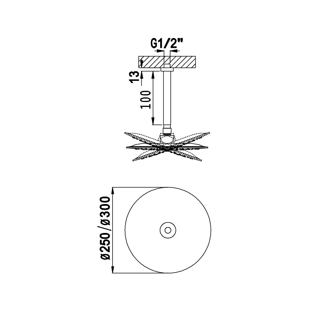 Bruma Deszczownica Ø250 mm z ramieniem sufitowym chrom 14553461