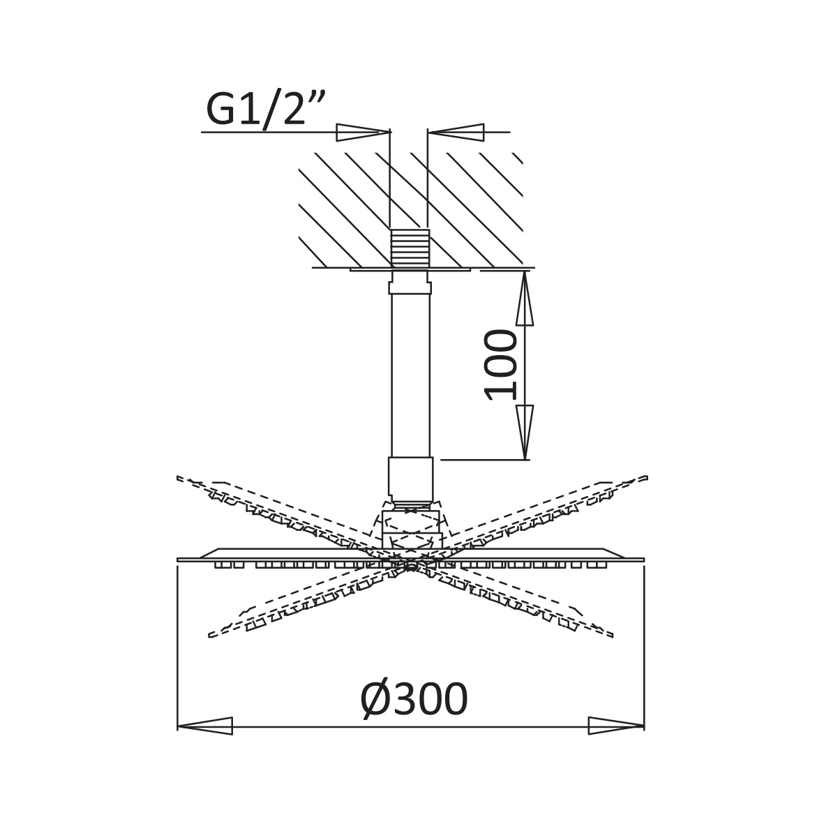 Bruma Deszczownica Ø300 mm z ramieniem sufitowym chrom 14553421