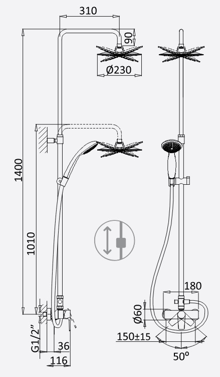 Bruma Nautic Zestaw natryskowy 230 mm z regulowaną wysokością prysznica 1812711CR