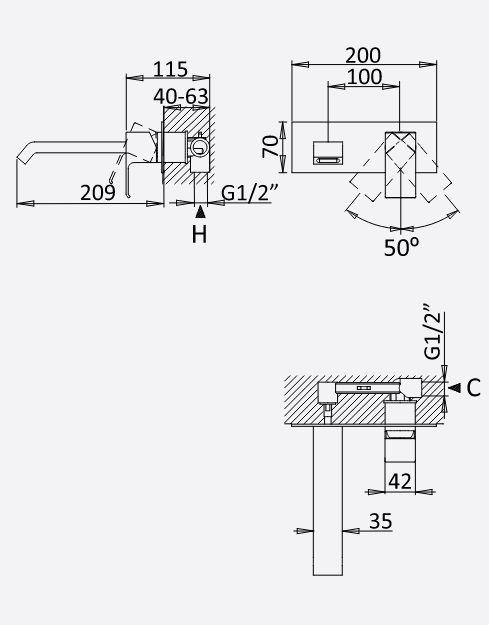Bruma Linea Bateria umywalkowa bez korka Naścienna chrom 1828201CR