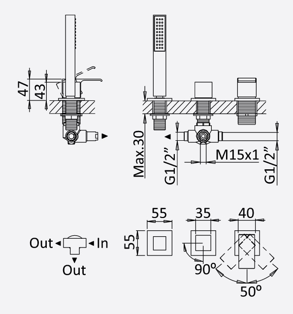 Bruma Linea Bateria wannowo-natryskowa Na Brzeg Wanny chrom 1825011CR