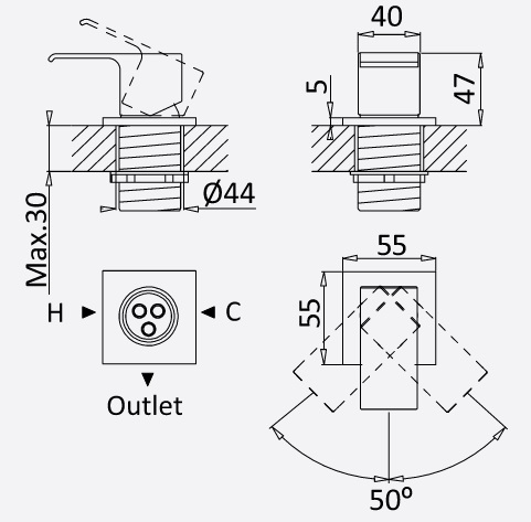 Szerokosć rozety: 55 mm