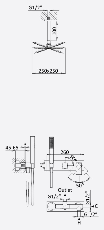 Bruma Linea Zestaw natryskowy 250 mm Podtynkowy z ramieniem sufitowym chrom 1825852CR