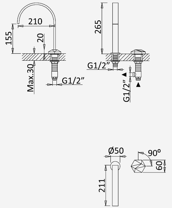Bruma Utopia Bateria umywalkowa 2-otworowa z korkiem Click-Clack chrom 1833911CR