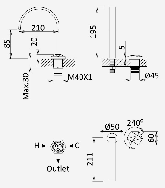 Długość wylewki: 210 mm