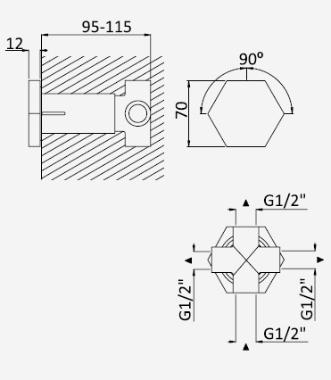 Przełącznik 3-drożny, podtynkowy z elementem montażowym podtynkowym w komplecie.
