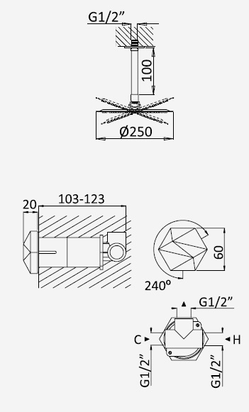 Bruma Utopia Zestaw natryskowy 250 mm Podtynkowy z ramieniem sufitowym chrom 1837102CR