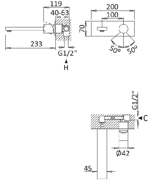 Bruma Lusa Bateria umywalkowa Podtynkowa 230 mm chrom 1019602CR
