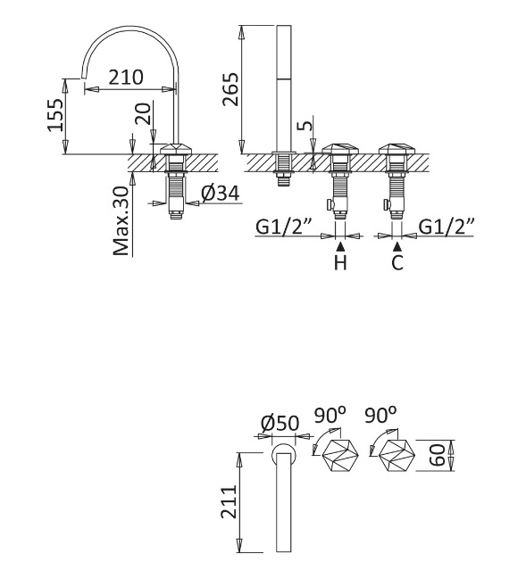 Bruma Utopia Bateria umywalkowa 3-otworowa z korkiem Click-Clack night sky 1832511NS