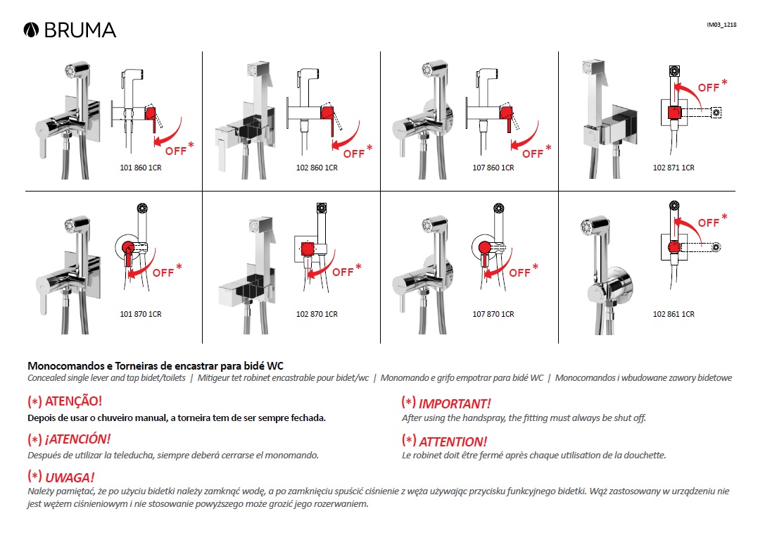 Należy pamiętać, że po użyciu bidetki należy zamknąć wodę, która niezamknięta byłaby pod ciśnieniem w wężu.