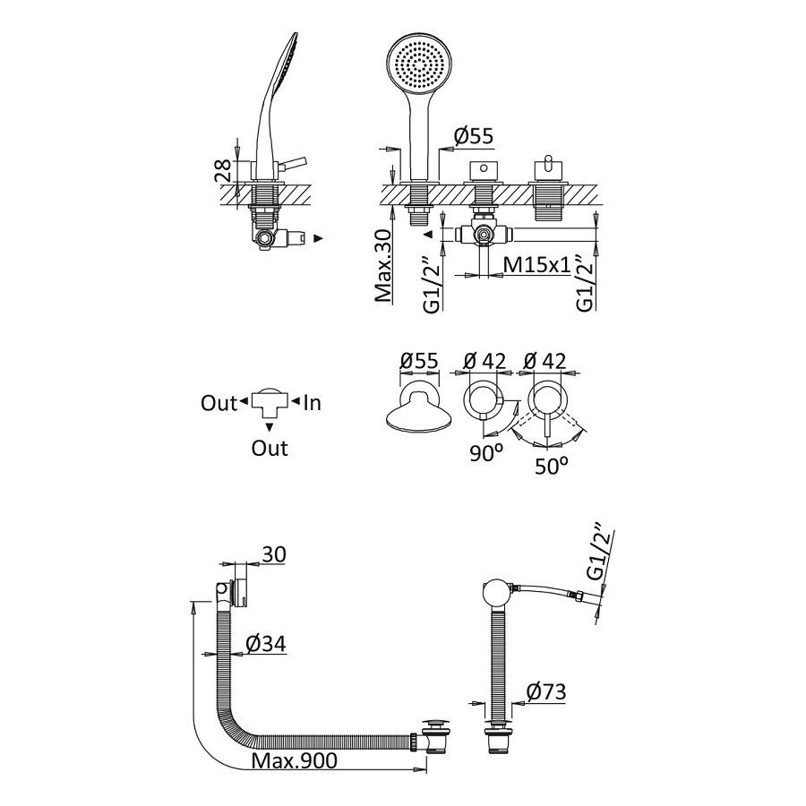 Bruma Lusitano Bateria wannowo-natryskowa na brzeg wanny chrom 1075201CR