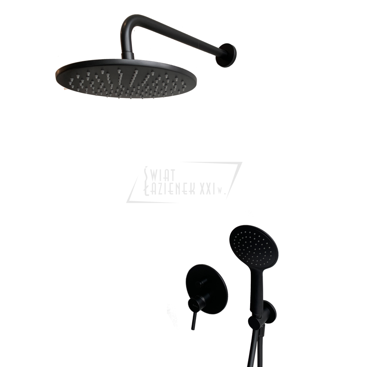 Zestaw natryskowy z ultracienką deszczownicą ze stali nierdzewnej, ramieniem i baterią podtynkową