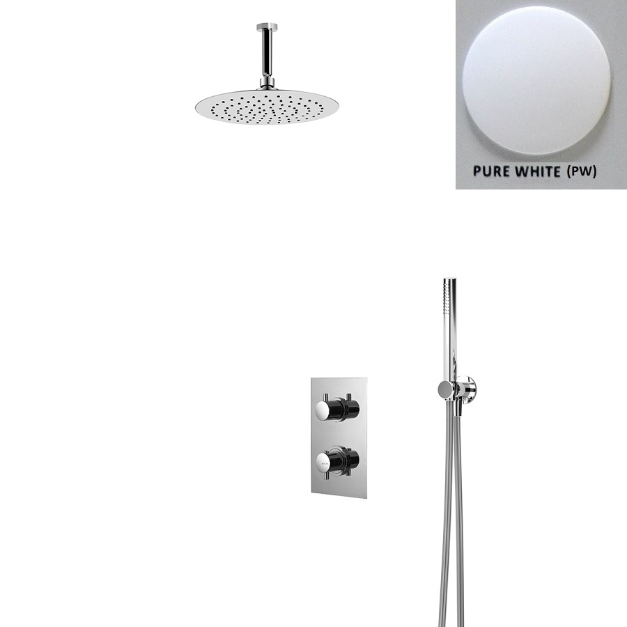 Bruma Elo Zestaw natryskowy 200 mm Termostatyczny Podtynkowy z ramieniem sufitowym pure white 1385603PW