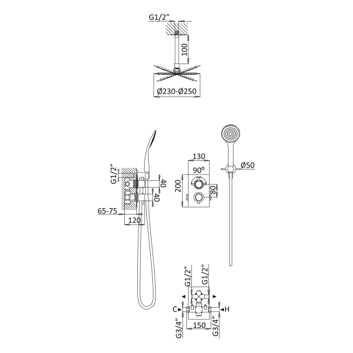 Wymiary:Średnica deszczownicy: Ø200 mm