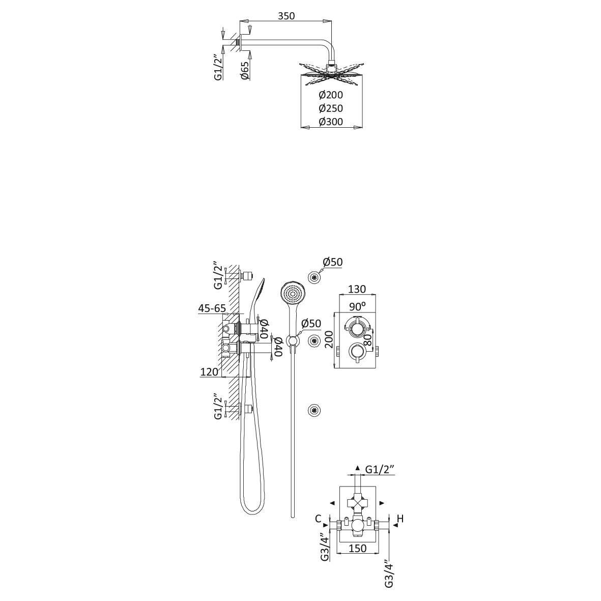 Wymiary:Średnica deszczownicy: Ø250 mm