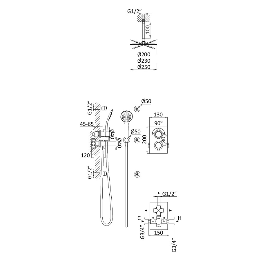 Wymiary:Średnica deszczownicy: Ø250 mm