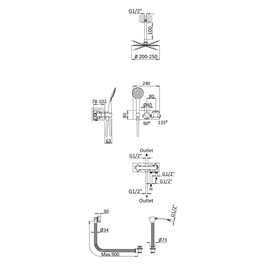 Wymiary:Średnica deszczownicy: Ø250 mm