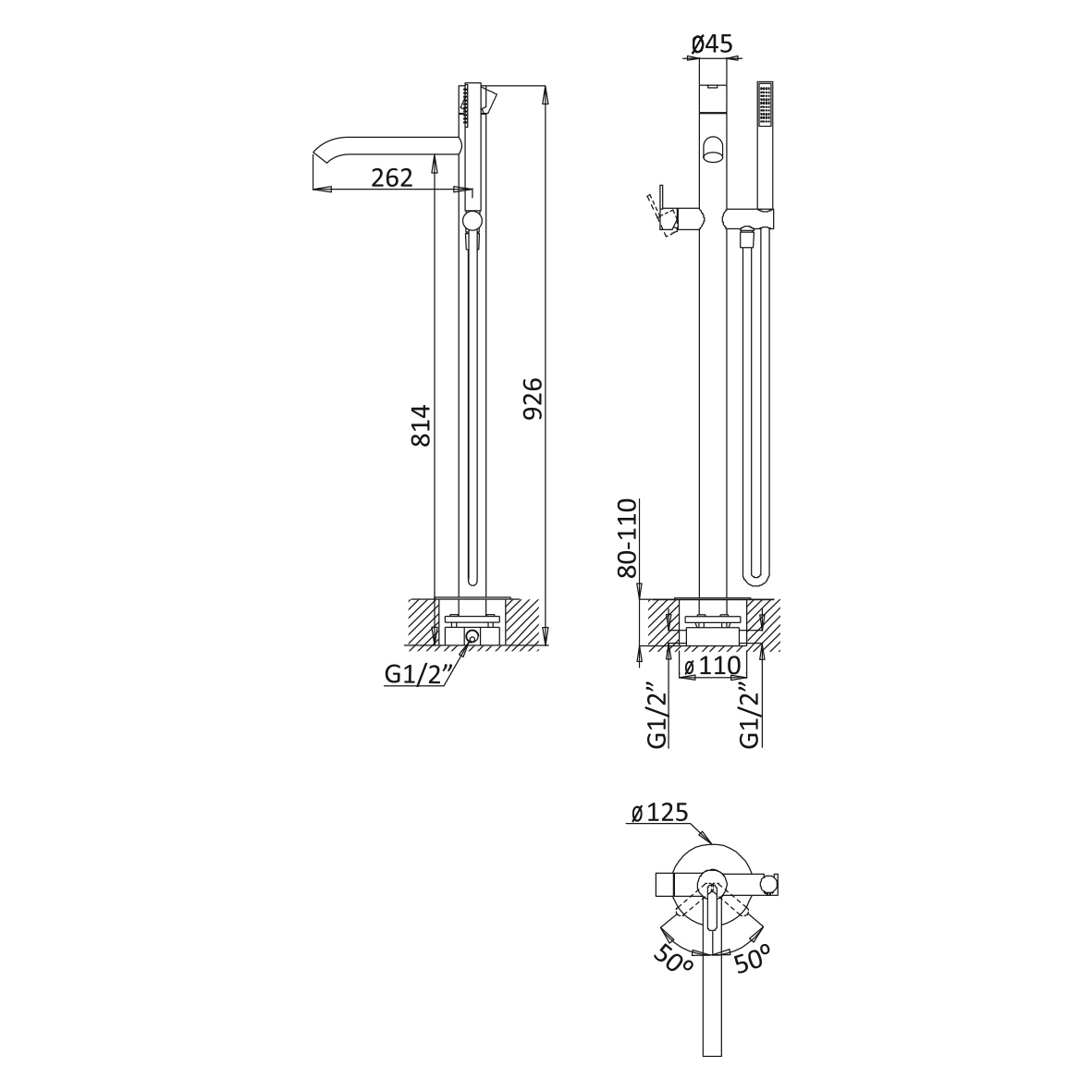 Bruma X-Alpha Bateria wannowa wolnostojąca satin stainless steel 1869801IS