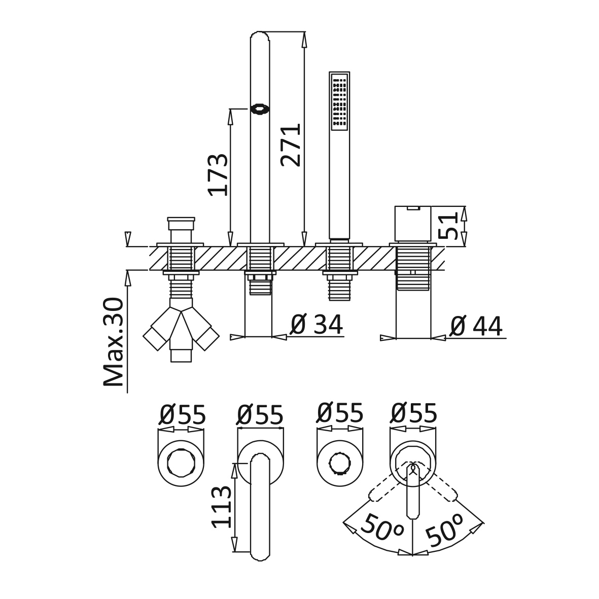 Wysokość wylewki: 271 mm