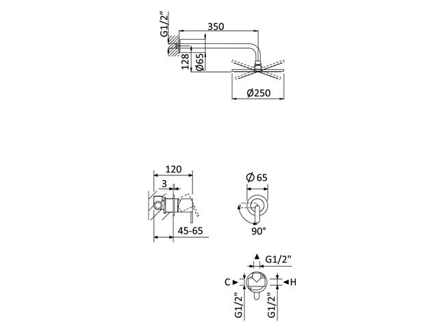 Zestaw zawiera mieszacz, słuchawkę, wąż oraz deszczownicę na ramieniu ściennym