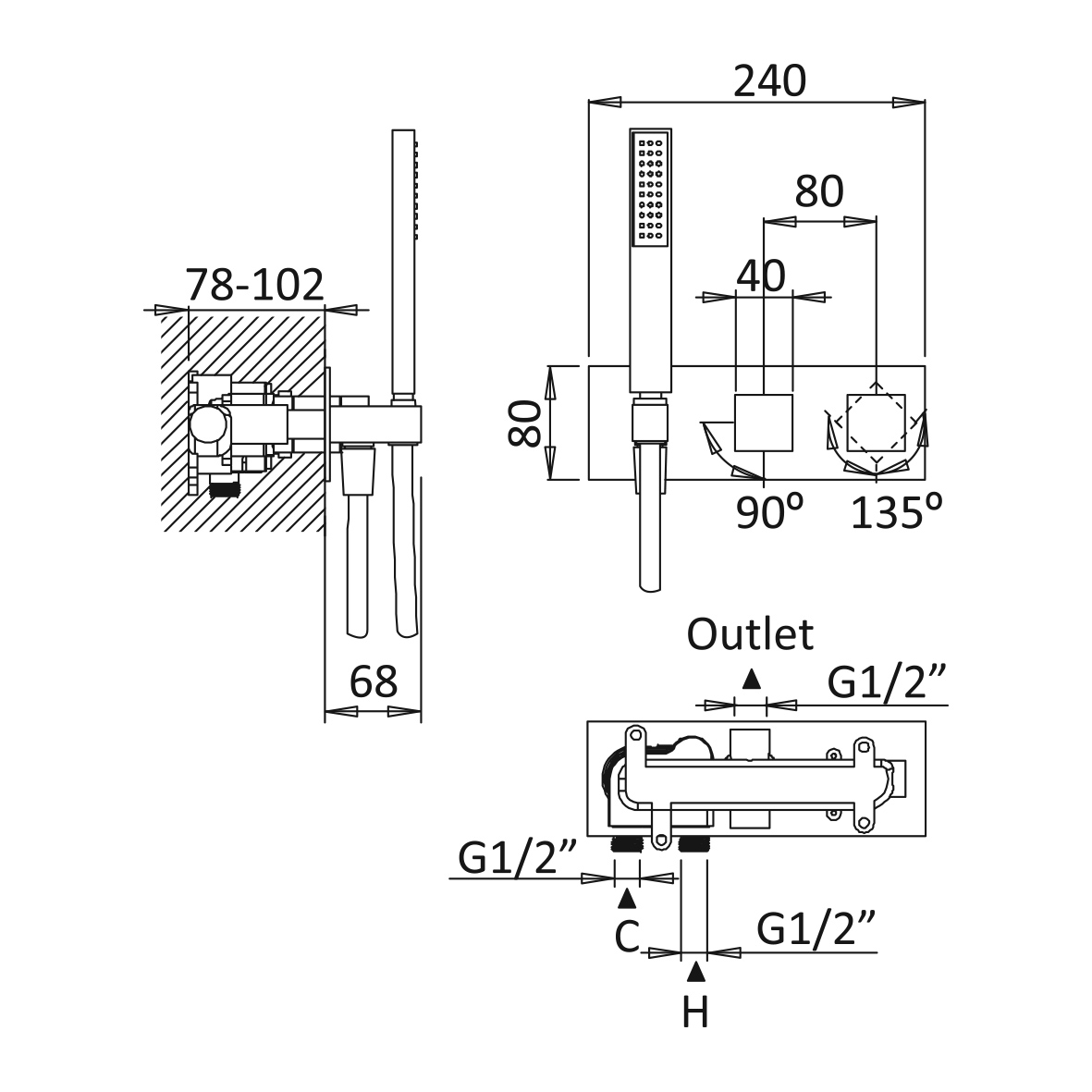 Bateria 2-drożna, termostatyczna, podtynkowa z elementem podtynkowym w zestawie.