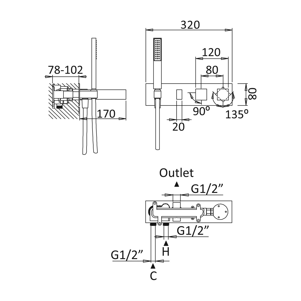 Bateria 2-drożna, termostatyczna, podtynkowa z wylewką, słuchawką i elementem podtynkowym w zestawie.