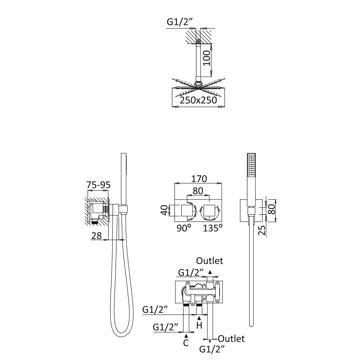Bruma Adamastor Zestaw natryskowy 250 mm termostatyczny podtynkowy z ramieniem sufitowym chrom 1855602CR