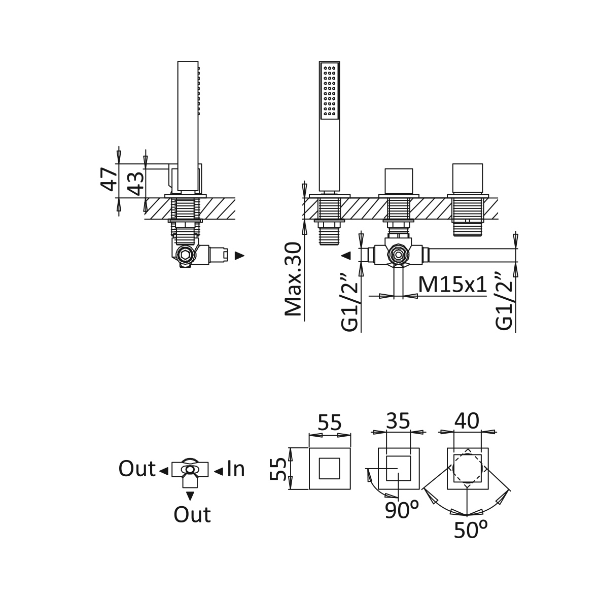 Bruma Escudo Zestaw natryskowy 2-drożna na brzeg wanny chrom 1025012CR