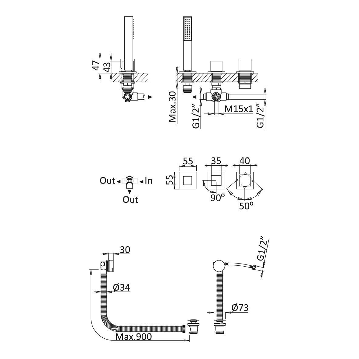 Bruma Escudo Zestaw natryskowy 2-drożna na brzeg wanny z syfonem chrom 1025212CR