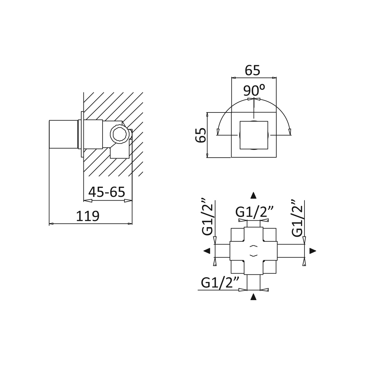 Zawór 3-drożny z elementem podtynkowym.