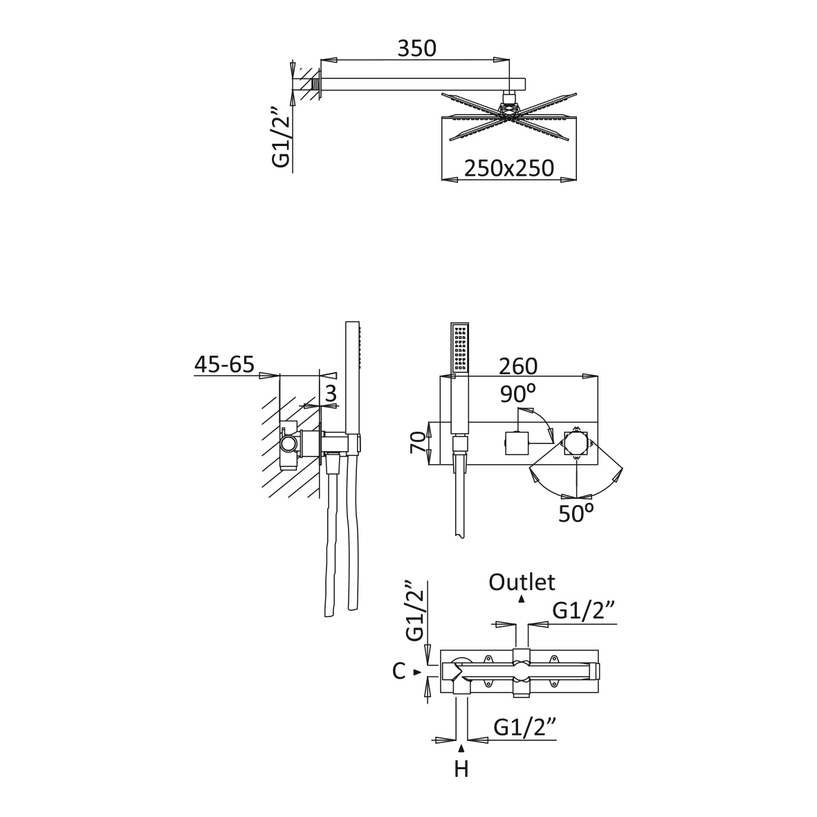 Długość deszczownicy: 250 mm