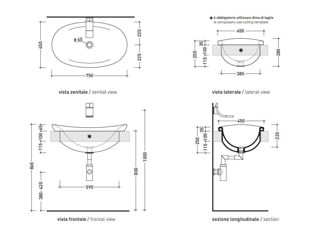 Flaminia Io Umywalka 75 x 45 x h 28cm wpuszczana w blat biała IO4275